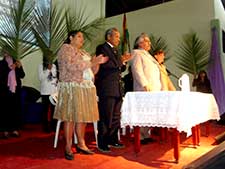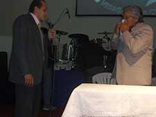 NICOLÁS APAHAZA, dejó su país natal, para dedicarse en cuerpo y alma a la obra del Señor, a la cuál se ha consagrado por más de 50 años junto a su esposa, parte fundamental de esta comisión, a la labor evangelización y preparación de nuevos cristianos a lo largo del todo el país. Es por ello, que distintos Pastores, Obreros y Líderes juveniles quisieron rendirle un homenaje en vida a este gran siervo de Dios, porque así sale mencionado en las Sagradas Escrituras: "...reconocer a nuestros enseñadores y al que honra a Dios... honrar..."