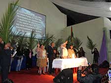En tanto el homenajeado, tuvo palabras hacia la congregación y los pastores presentes: "El deseo ardiente e impaciente de mi corazón junto a mi amada esposa, es que la Tierra sea llena de la gloria de Dios, como las aguas cubren la mar...", así agradeció por esta distinción el Pastor Nicolás Apahaza